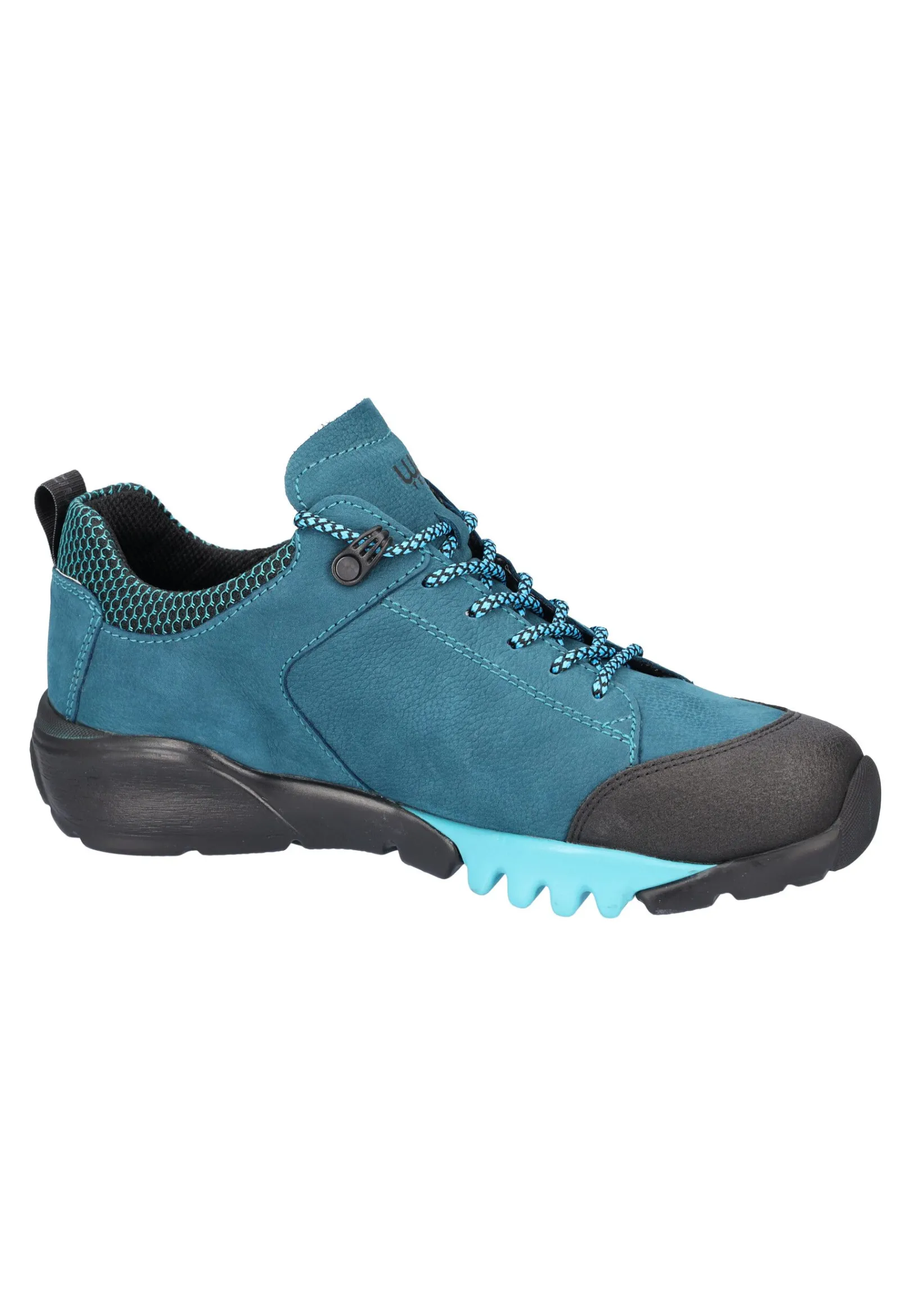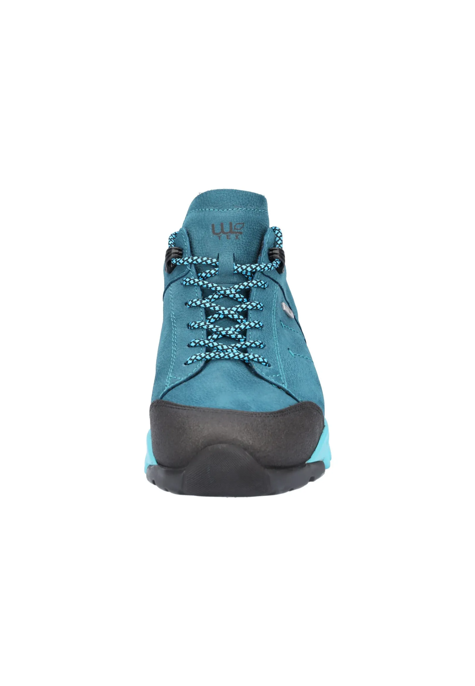 Dieser Robuste Outdoor-Schnürschuh In Der Weite H Vereint Angenehmen Tragekomfort Mit Ansprechender Optik. Das Türkisfarbene Obermaterial Aus Velourleder Harmonisiert Farblich Sehr Schön Mit Den Schwarzen Akzenten An Fußspitze Und Sohle. Die Zweifarbige Tpu/Pu-Sohle Mit Kräftigem Profil Rundet Die Silhouette Dieses Markanten Schuhs Ab Und Sorgt Dazu Noch Für Einen Sicheren Halt. Mit Der Schnürung In Bergsteigeroptik Lässt Sich Die Weite Individuell Anpassen. Das Weiche Innenfutter Sorgt Für Tragekomfort. Die Wasserdichte Waldläufer-Tex Membran Machen Ihn Dazu Noch Wetterfest.