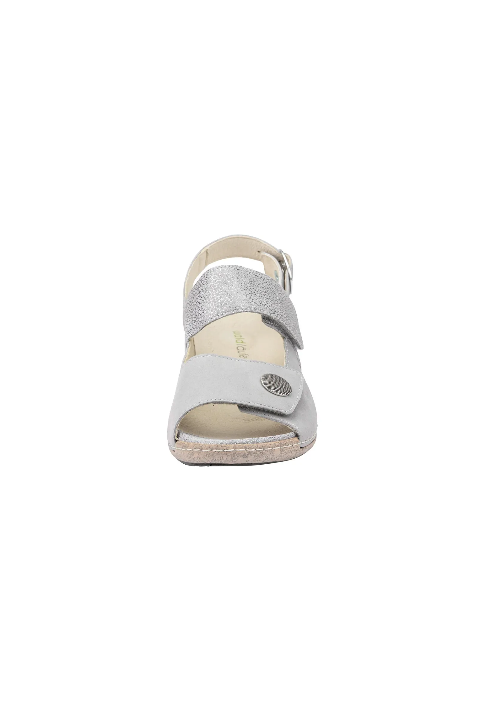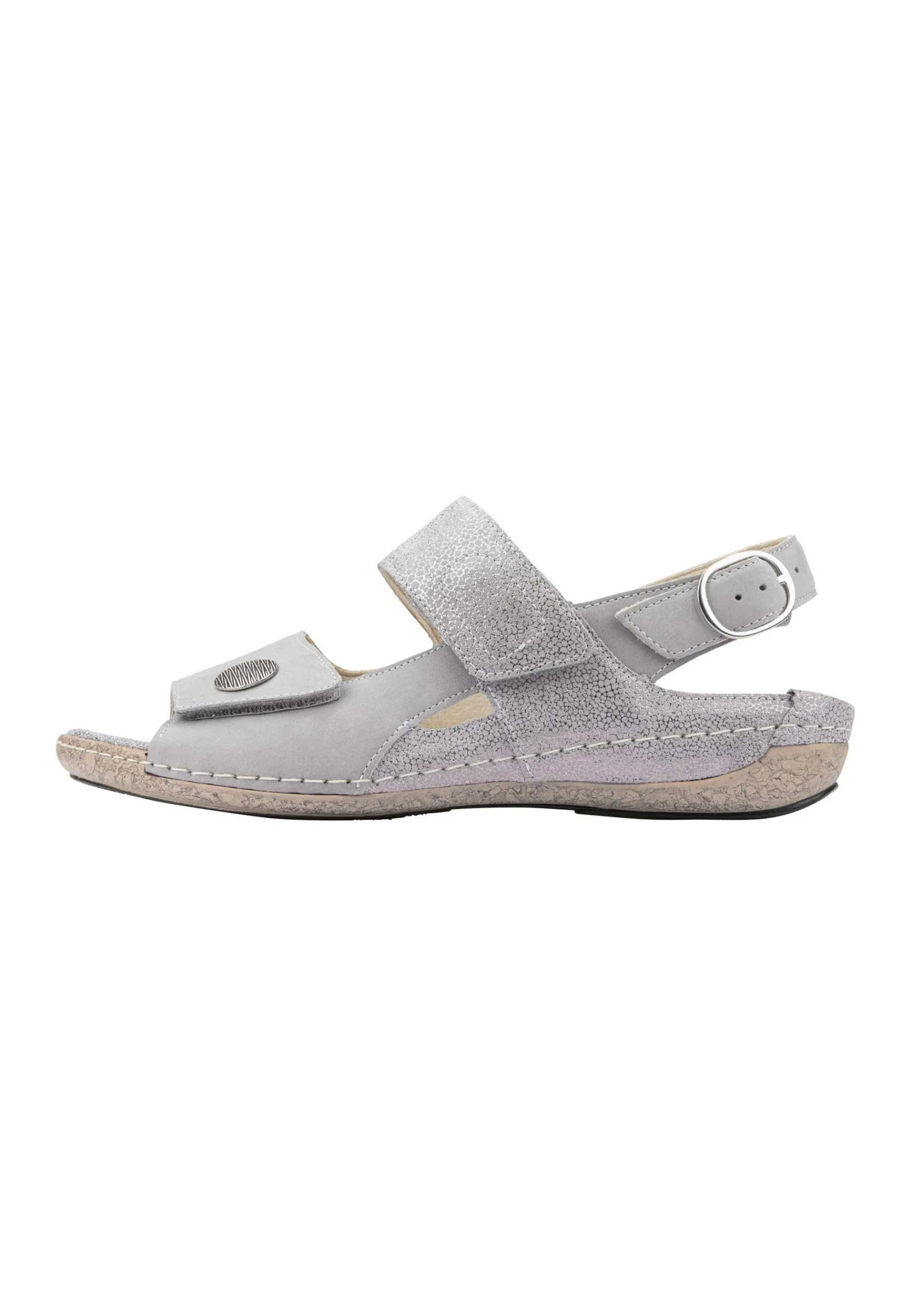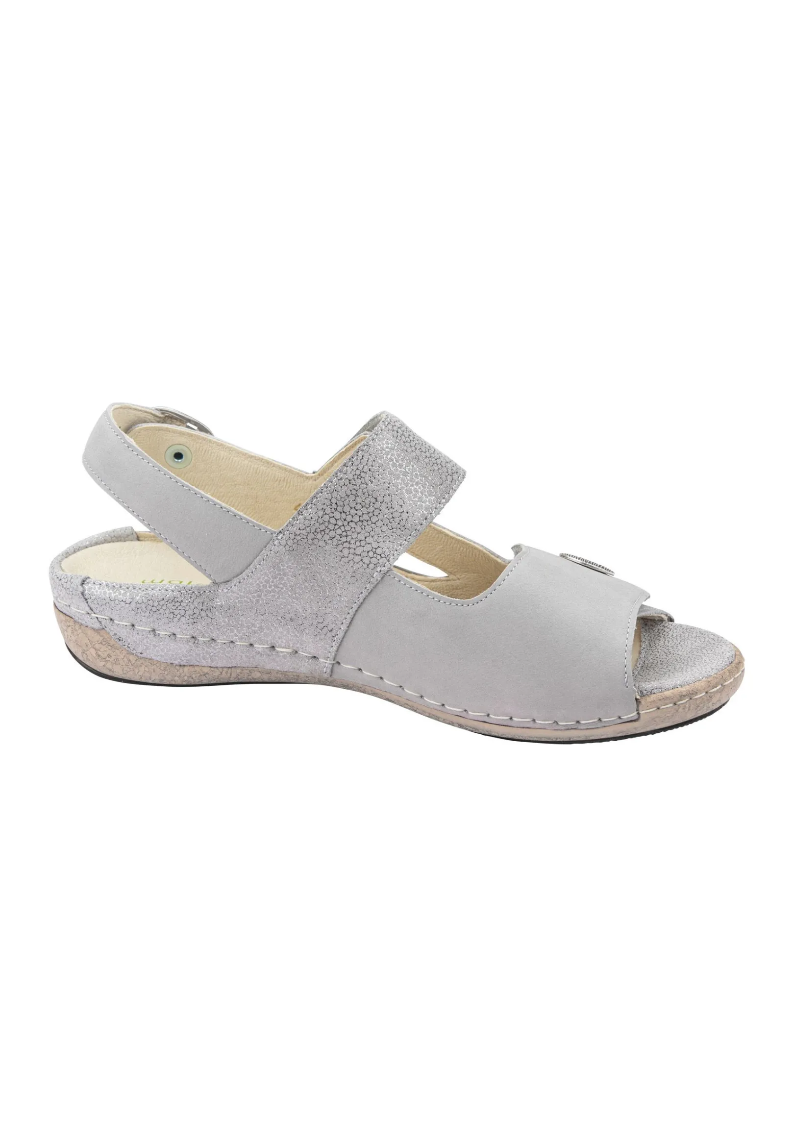 Die Waldläufer Damen-Sandale Heliett Ist Durch Ihr Schlichtes Aber Elegantes Design In Beige Und Hellgrau Absolut Zeitlos Und Wird Durch Die Ziernaht Und Die Korkoptik-Sohle Wunderbar Ergänzt. Dank Zwei Klettverschlussriemchen Und Einem Verstellbaren Fersenriemchen Kann Die Sandale An Jede Fußform Individuell Angepasst Werden Und Die Komfortweite H Ist Ideal Für Den Etwas Stärkeren Fuß. Die Stylische Verzierung Am Vorderen Riemchen Ist Ein Besonderer Eyecatcher.