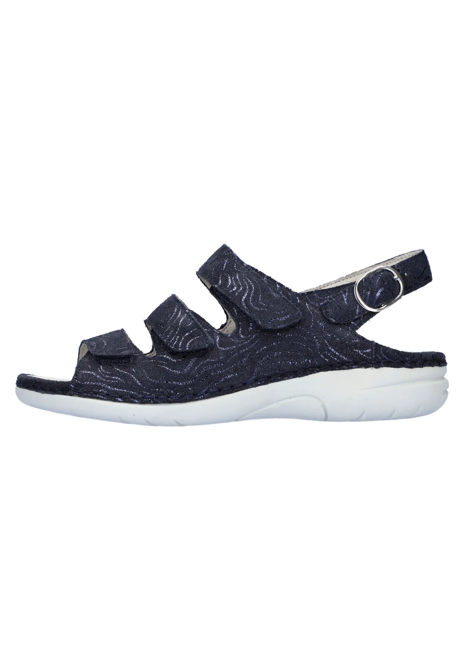 Erleben Sie Mit Der Gunna Sandale Von Waldläufer In Der Farbe Midnight Blue Hohen Tragekomfort Und Stilvolles Design. Das Obermaterial Aus Velourleder Und Das Futter Aus Echtem Leder Garantieren Angenehmes Fußklima. Die Pu-Sohle Sorgt Für Optimale Dämpfung Und Die Leder-Einlegesohle Bietet Zusätzlichen Komfort. Mit Dem Klettverschluss Lässt Sich Die Sandale Individuell Anpassen. Die Sandale Ist In Der Weite H Erhältlich Und Bietet Damen Mit Anspruchsvollen Füßen Besten Halt Und Bequemlichkeit. Eine Trendige Farbe Und Hochwertige Verarbeitung Machen Die Gunna Sandale Zum Perfekten Begleiter Für Den Sommer.