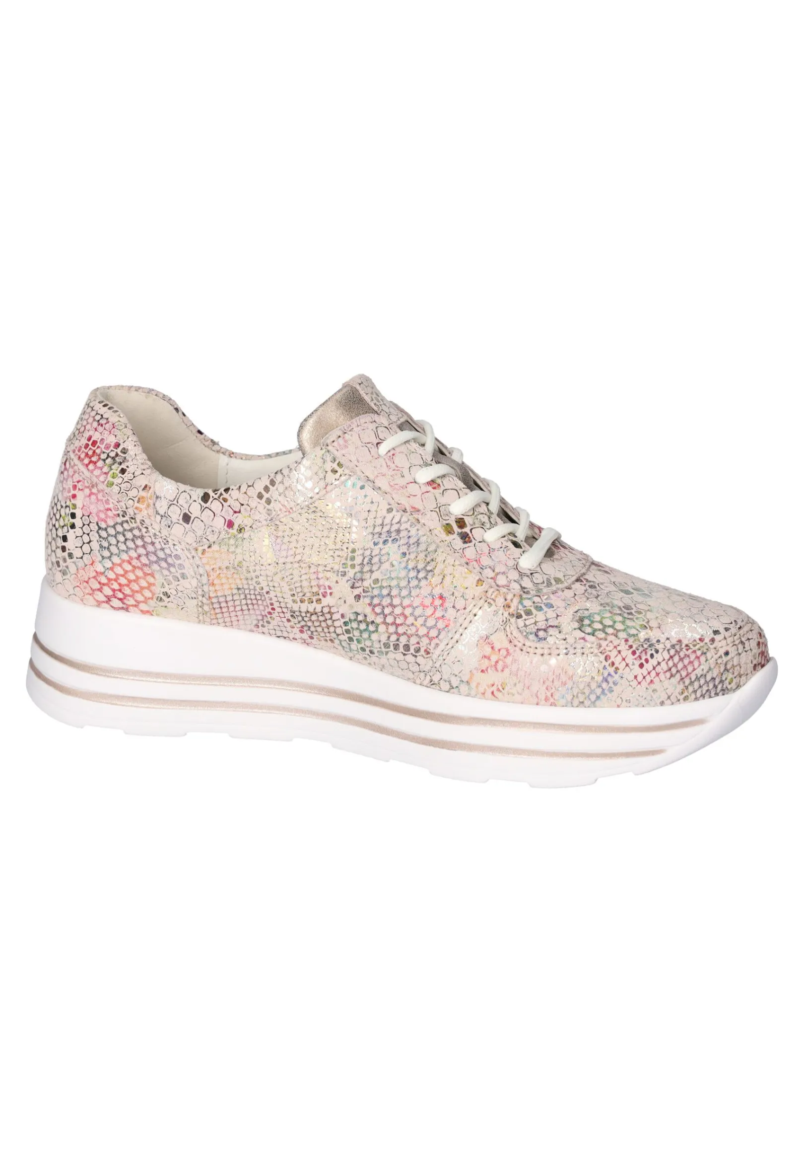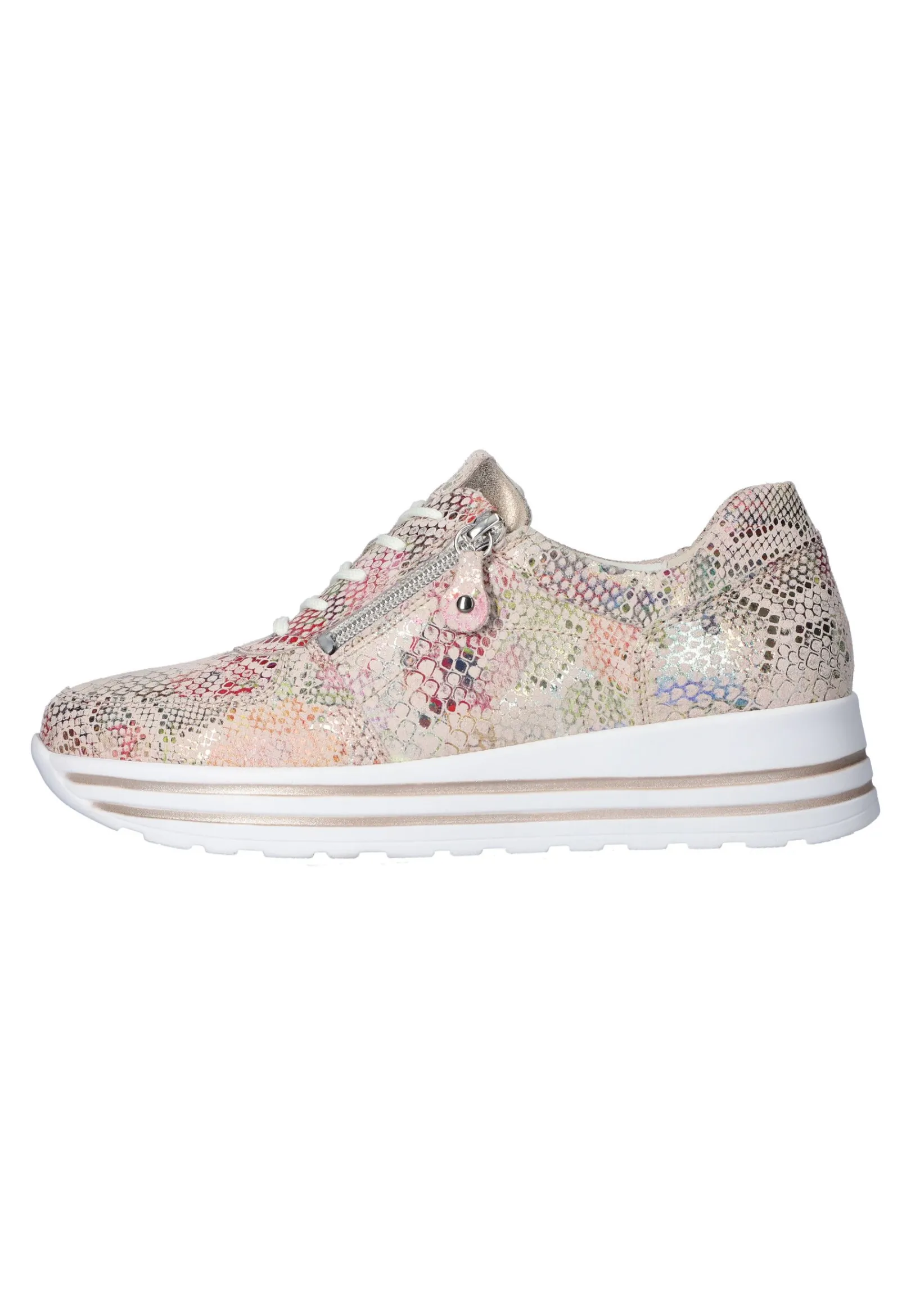 Dieser Damen-Sneaker Lässt Euch Wie Auf Wolken Gehen: Der Waldläufer H-Lana In Einem Fröhlichen Farbmix Verleiht Jedem Fuß, Dank Seiner Leichten Sohle Und Der H-Weite, Ein Gefühl Von Leichtigkeit. Die Gestreifte Sohle Und Der Animal-Print Lassen Den Schuh Zum Hingucker Werden. Der Zusätzliche Reißverschluss Erleichtert Zudem Das An-Und Ausziehen.
