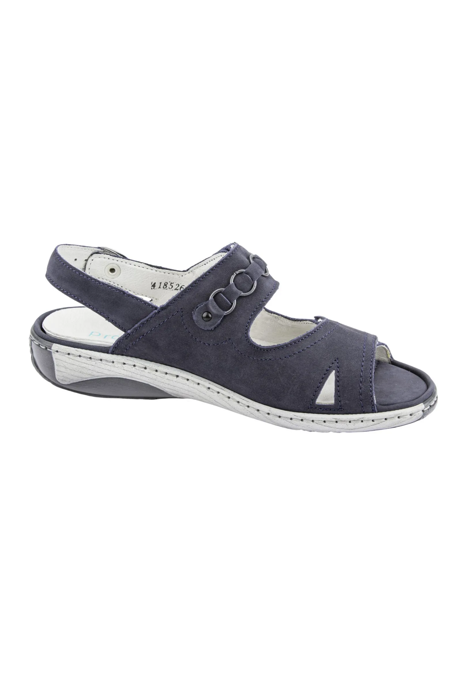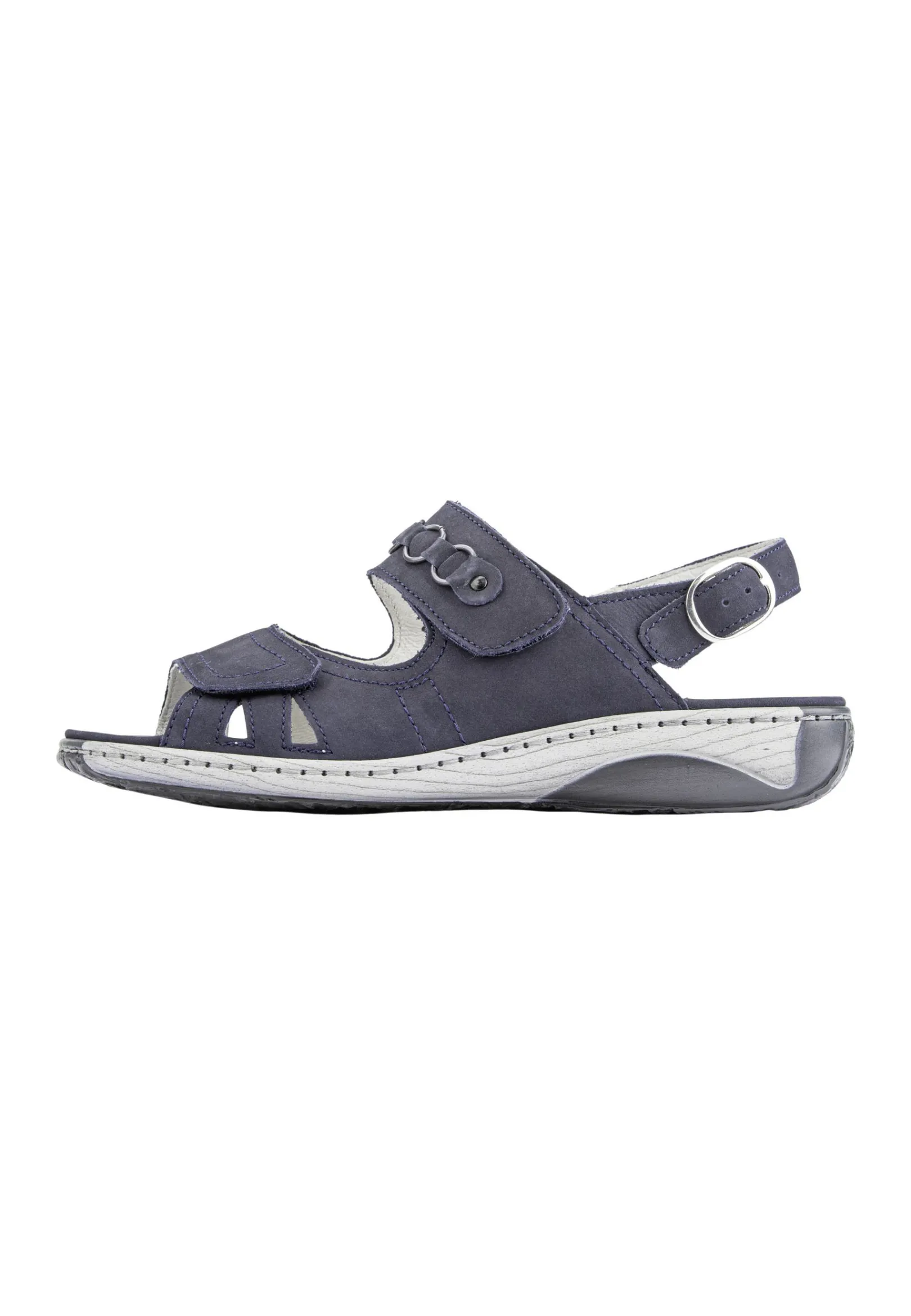 Eleganz Und Bequemlichkeit Sind In Diesem Modell Vereint. Das Hochwertige Leder Macht Die Damen Sandale Garda In Der Farbe Blau Besonders Chic. Der Schuh Lässt Sich Mit Den Klettverschlüssen Individuell An Den Fuß Anpassen. Für Optimalen Halt Und Höchsten Tragekomfort Sorgen Zudem Das Gepolsterte Wechselfußbett Und Die Schmale Ferse Sowie Die Weite G Für Den Normalen Fuß.