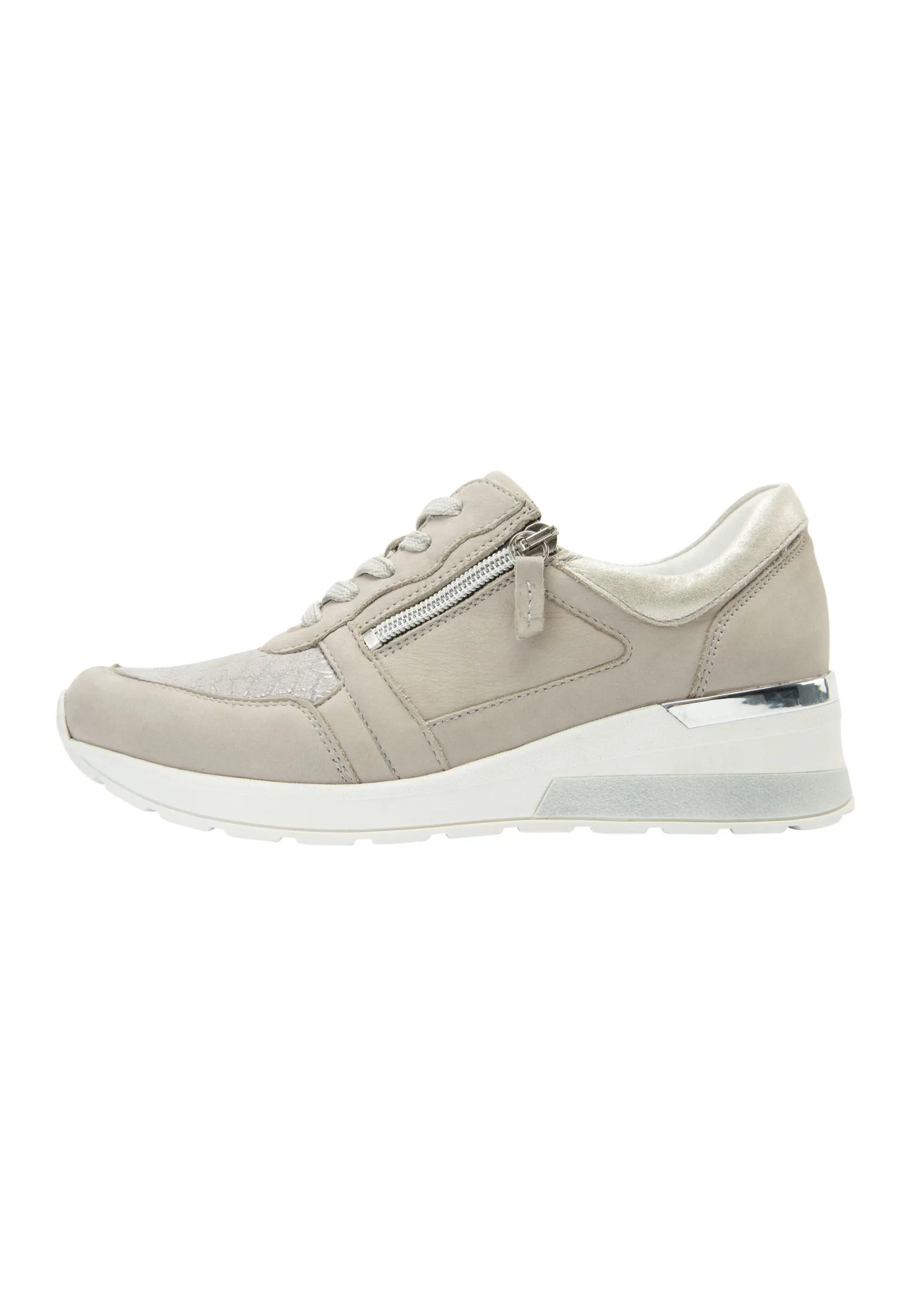 Wer Es Dezent Und Doch Modisch Mag, Für Den Ist H-Clara-Soft Im Farbton Stein Mit Seinem Angesagten Reptilienmix Die Perfekte Wahl. Die Weiße Sohle Lässt Den Silbernen Animalprint Im Vorfußbereich Besonders Strahlen Und Der Zusätzliche Seitliche Reißverschluss Erleichtet Auch Das An- Und Ausziehen. Der Leder-Textil-Mix Ist Äußerst Angenehm Zu Tragen Und Die Besondere Microlight-Sohle Sowie Der 30 Mm Absatz Sorgen Für Hohen Tragekomfort.
