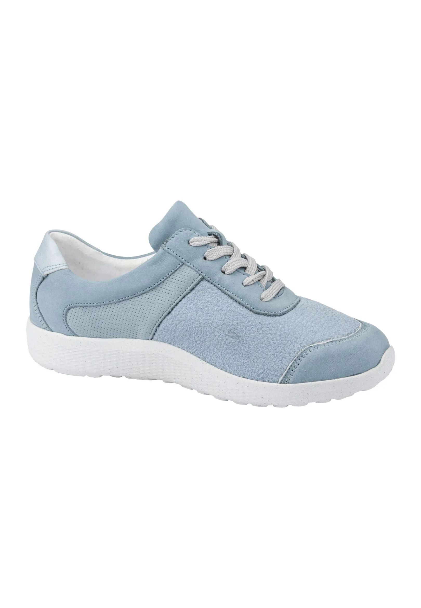 Der M-Ira-Soft Damen-Sneaker Besticht Durch Seinen Frischen Look Und Seine Bequemlichkeit. Der Zarte Farbton In Sky Harmoniert Perfekt Mit Der Weißen Sohle, Während Der Materialmix Und Die Helleren Farbakzente Schöne Eyecatcher Bilden. Auch Der Zusätzliche Seitliche Reißverschluss Ist Ein Schöner Hingucker Und Dient Dem Vereinfachten An- Und Ausziehen. Die Leichte Sohle Bietet Guten Halt Und Sorgt Für Ein Angenehmes Gehen. Unterstützt Wird Dies Noch Durch Den 20 Mm Absatz. Dank Des Angenehmen Obermaterials Kann Bei Diesem Orthotritt-Sneaker Auch Nichts Drücken Oder Scheuern.