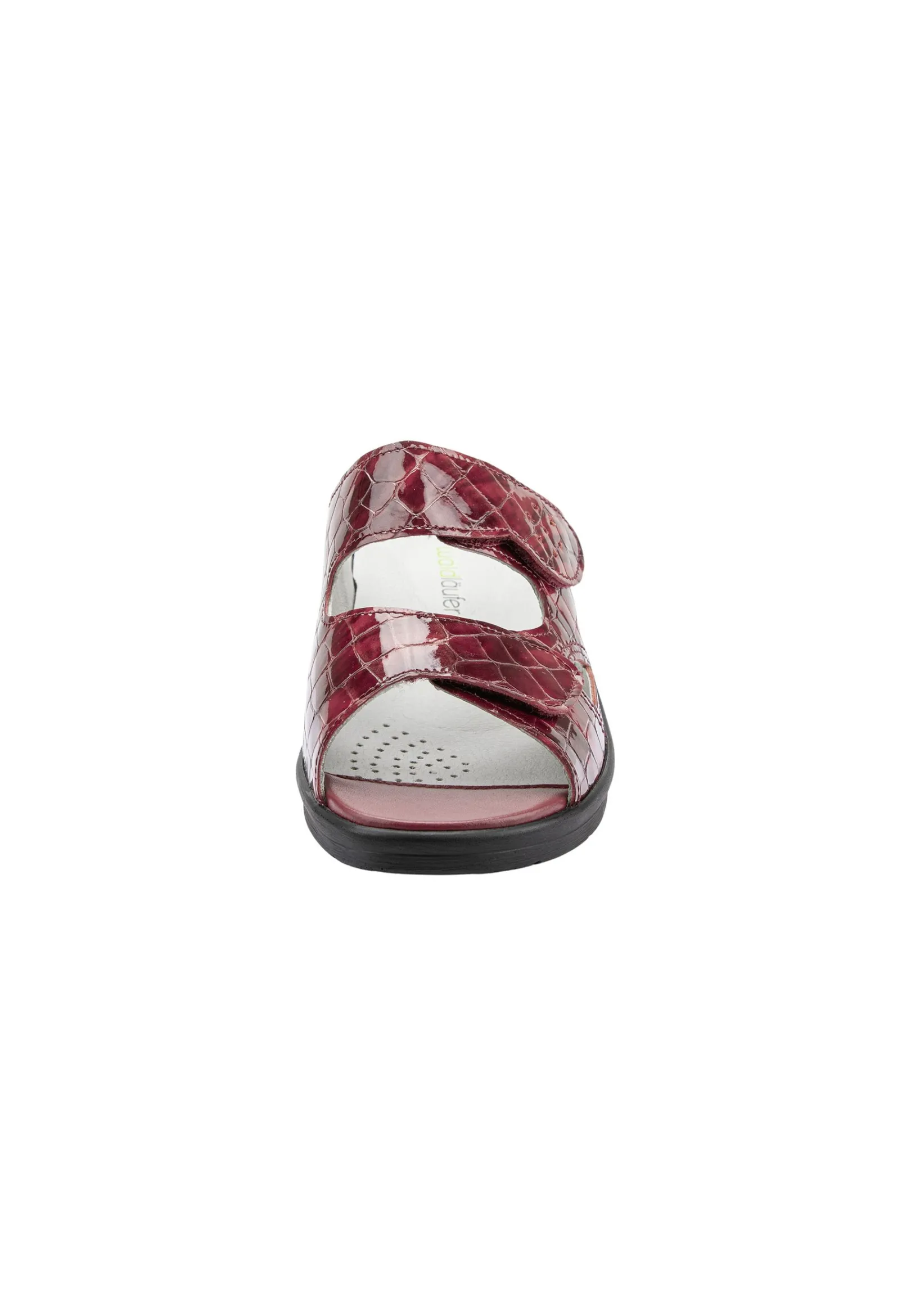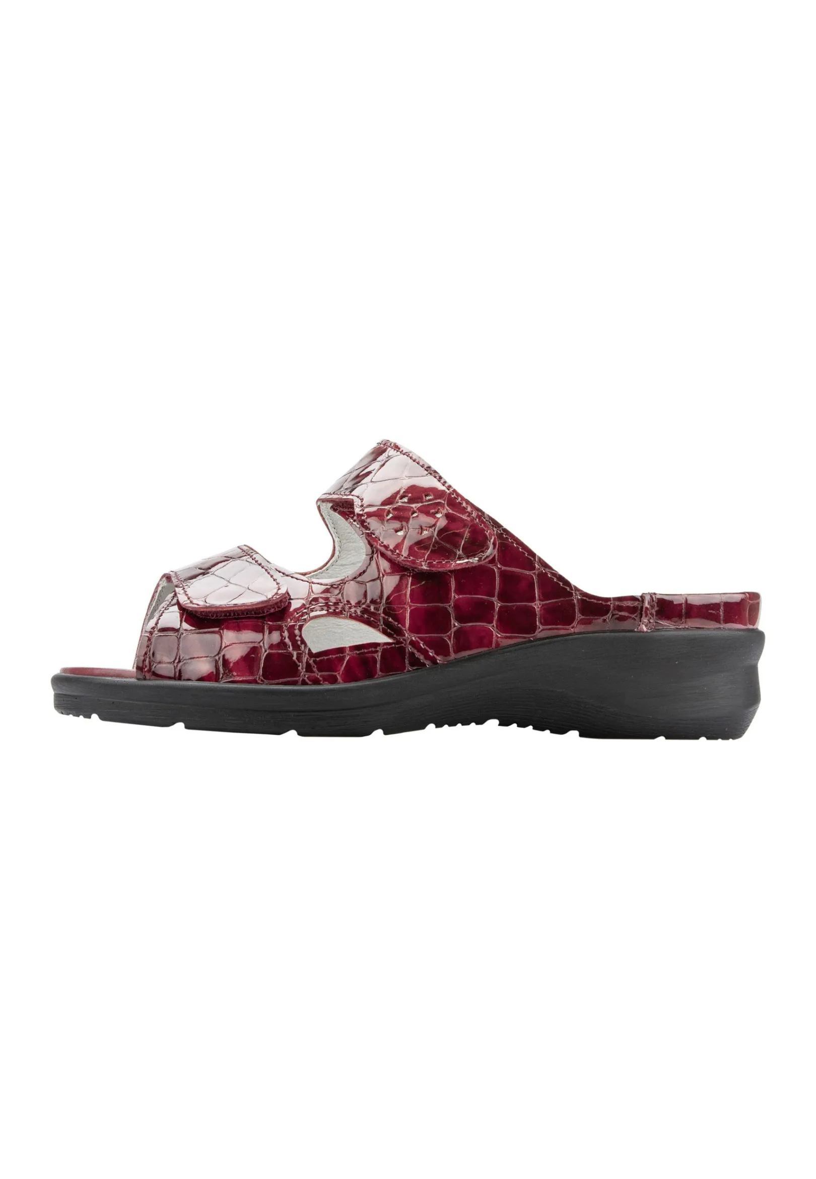 Wer Gerne Modische Statements Setzt, Der Ist Mit Unserer Damen-Pantolette Merle Bestens Bedient. Auffällig Rotes Lackleder Kombiniert Mit Angesagtem Kroko-Print – Wer Behauptet, Dass Bequemschuhe In Der Weite M Für Besonders Kräftige Füße Nicht Stylisch Sein Können? Der Look Dieses Waldläufers Wird Durch Die Schwarze Sohle Und Die Lochblüte Abgerundet. Mit Seinen Praktischen Klettverschlussriemchen Passt Sich Der Schuh Individuell An Jeden Fuß An, Zudem Wird Trotz Des Simplen Hineinschlüpfens Ein Sicherer Halt Garantiert. Durch Den 3 Cm Hohen Absatz Wird Das Bein Optisch Verlängert Und Zaubert Ein Feminines Aussehen.