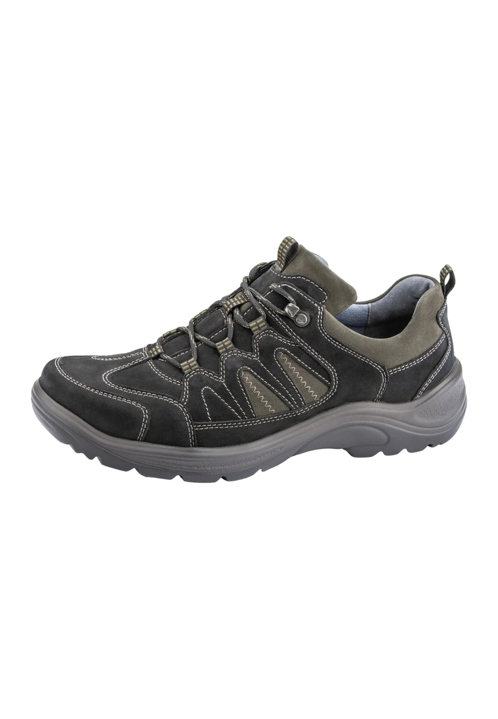 Der Herren-Trekkingschuh Hayo Ist Bergauf Sowie Bergab Ein Sicherer Begleiter. Mit Seiner Leichten Aber Robusten Sohle Trägt Er Dich Bequem Auf Deinen Wanderungen – Egal Bei Welchem Wetter. Dank Der Komfortweite H Für Den Etwas Stärkeren Fuß Und Der Geschickt Verarbeiteten Schnürung Ist Höchster Tragekomfort Garantiert. Mit Seinem Schlichten Farbmix Lässt Er Sich Super Zu Vielen Outfits Kombinieren Und Die Ziernähte Lockern Den Look Dieses Waldläufers Noch Auf.