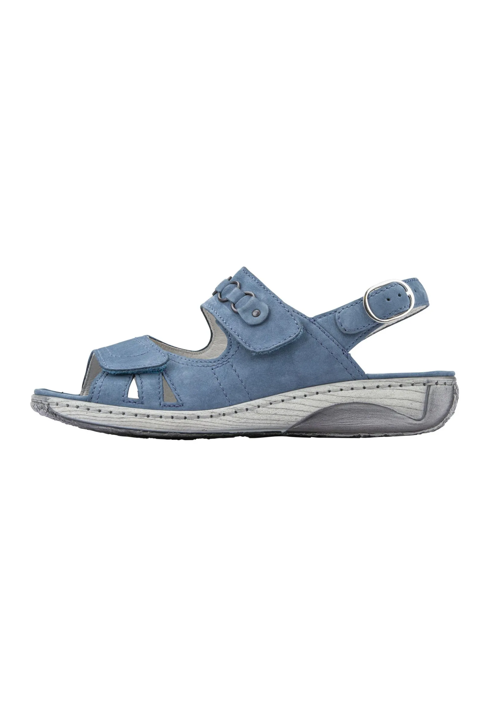 Eleganz Und Bequemlichkeit Sind In Diesem Modell Vereint. Das Hochwertige Leder Macht Die Damen Sandale Garda In Der Farbe Denim Besonders Chic. Der Schuh Lässt Sich Mit Den Klettverschlüssen Individuell An Den Fuß Anpassen. Für Optimalen Halt Und Höchsten Tragekomfort Sorgen Zudem Das Gepolsterte Wechselfußbett Und Die Schmale Ferse Sowie Die Weite G Für Den Normalen Fuß.