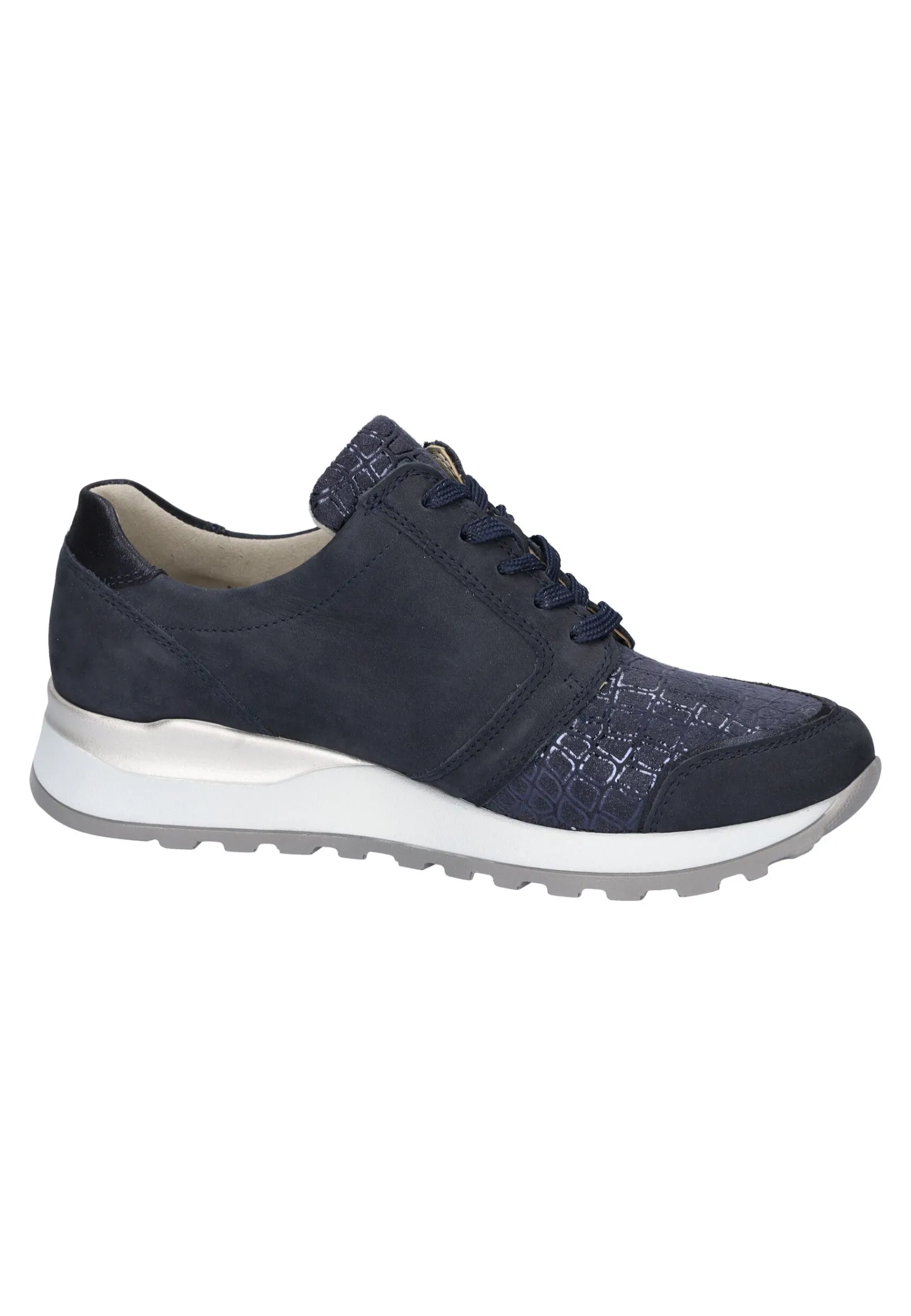 Der Modische Sneaker Hiroko-Soft Aus Der Orthotritt-Kollektion Ist Mit Der Trendfarbe Blau, Dem Dezenten Animalprint, Den Lack-Applikationen Sowie Der Mehrfarbigen Sohle Ein Wahrer Eyecatcher. Doch Der Halbschuh Sieht Nicht Nur Gut Aus, Er Ist Auch Äußerst Praktisch Und Bequem. Das Obermaterial Schmiegt Sich Sanft An Den Fuß An Und Die Leichte Pu-Sohle Sowie Die 20 Mm Sprengung Erleichtern Das Gehen.