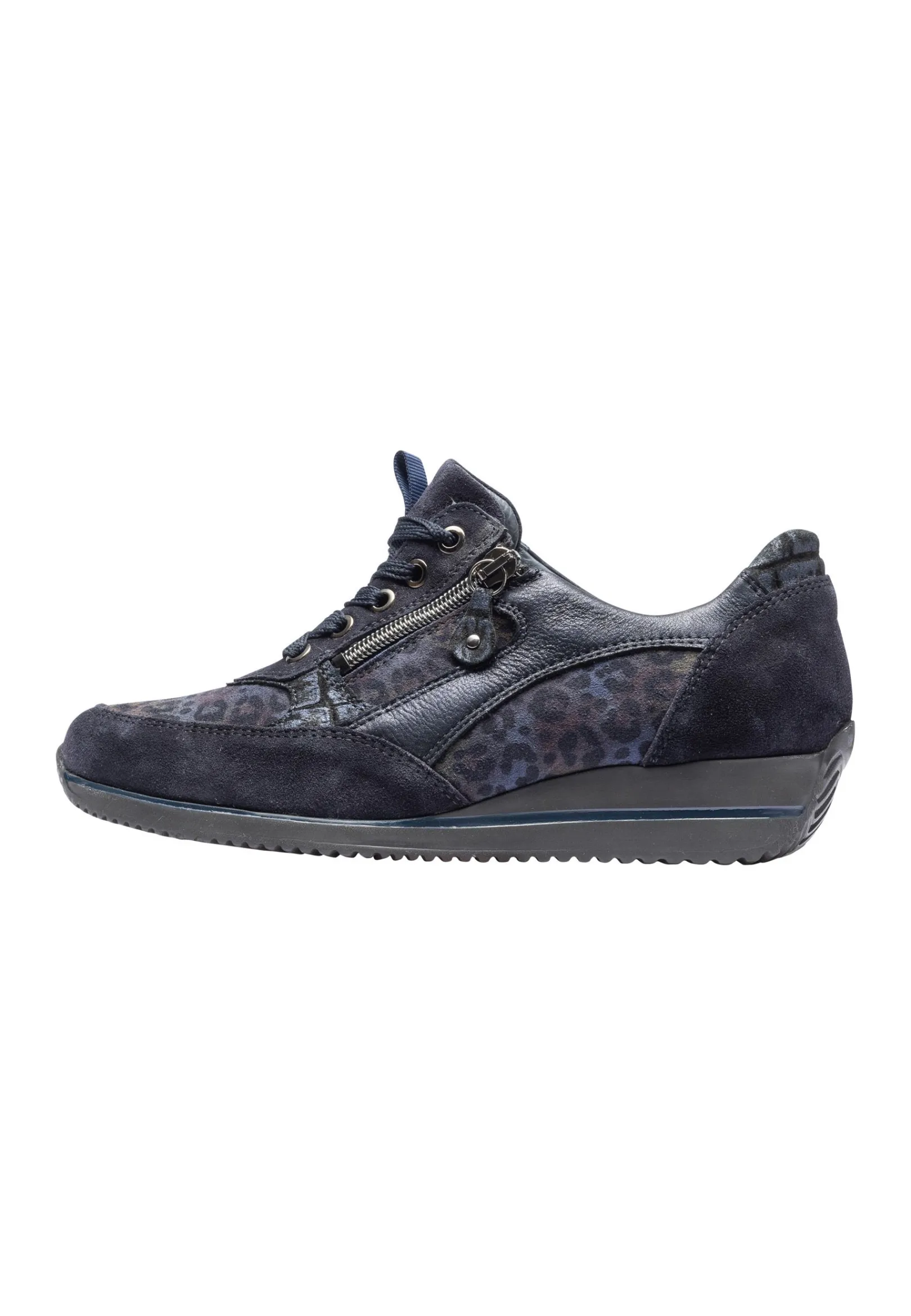 Der Damen-Schnürschuh Himona In Seinem Schönen Farbton Notte Verbindet Modische Elemente Mit Klassischer Linienführung. Komfortgerecht Ist Der Waldläufer Mit Wechselfußbett, Eva-Leicht-Laufsohle Sowie Der Bequemweite H Für Den Etwas Stärkeren Fuß Ausgestattet.