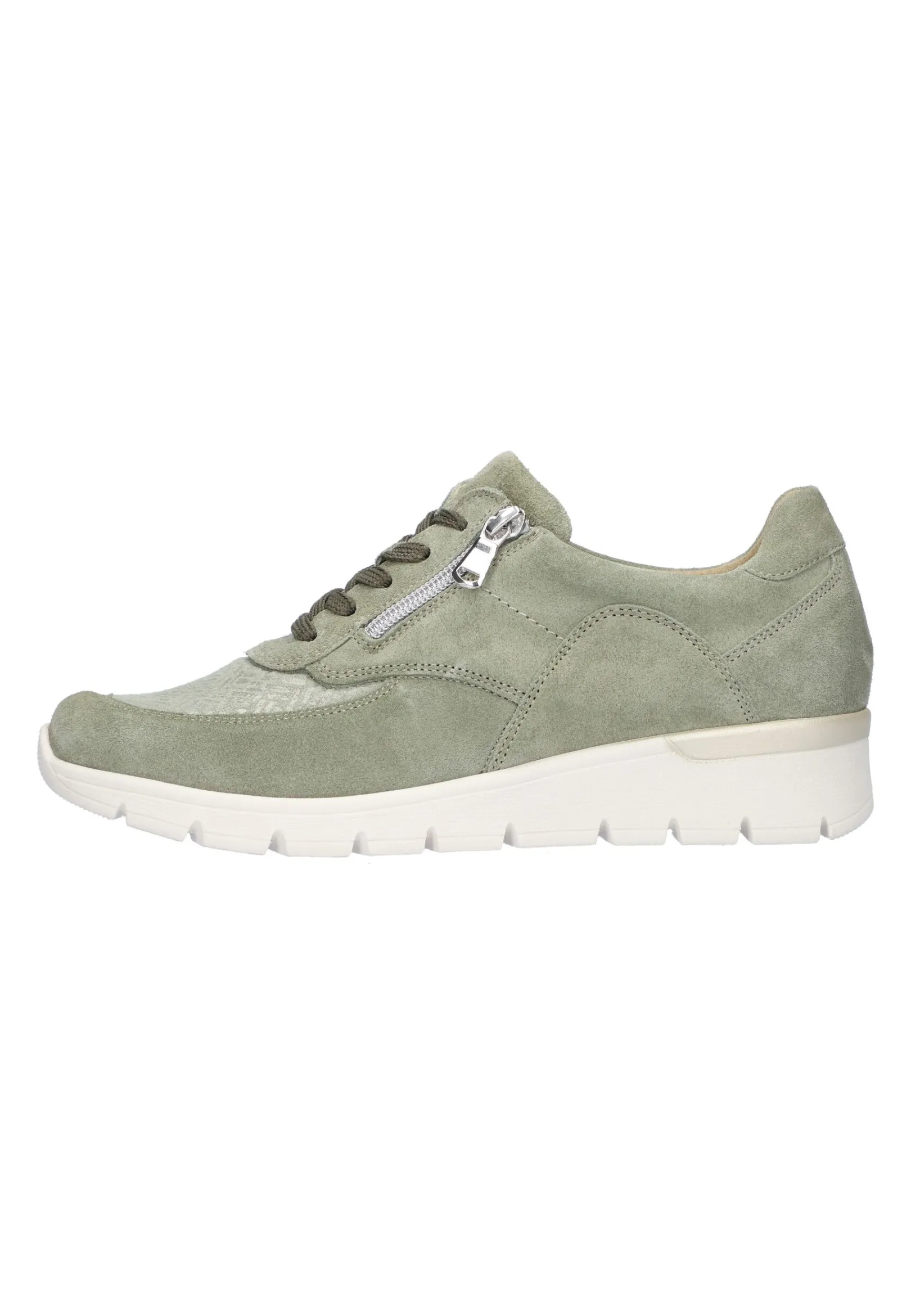Der Sneaker In Spezialweite K Für Den Breiteren Fuß Begeistert Durch Sein Modisches Design Und Seine Frischen Farbnuancen In Minze. Durch Den Materialmix Und Die Markanten Nähte Am Obermaterial Aus Weichem Velourleder Kommt Der Akzent An Der Fußspitze Besonders Zur Geltung. Die Griffige Luftpolstersohle In Pearl Light Gold Setzt Einen Schönen Farbkontrast. Der Seitliche Reißverschluss Ist Ein Praktischer Hingucker. Wie Alle Orthotritt-Modelle Von Waldläufer Ist Auch Dieser Schuh In Seinem Obermaterial Flexibel, Schmiegt Sich Der Einmaligen Fußform An Und Ist Daher Gerade Für Sensible Füße Besonders Gut Geeignet.