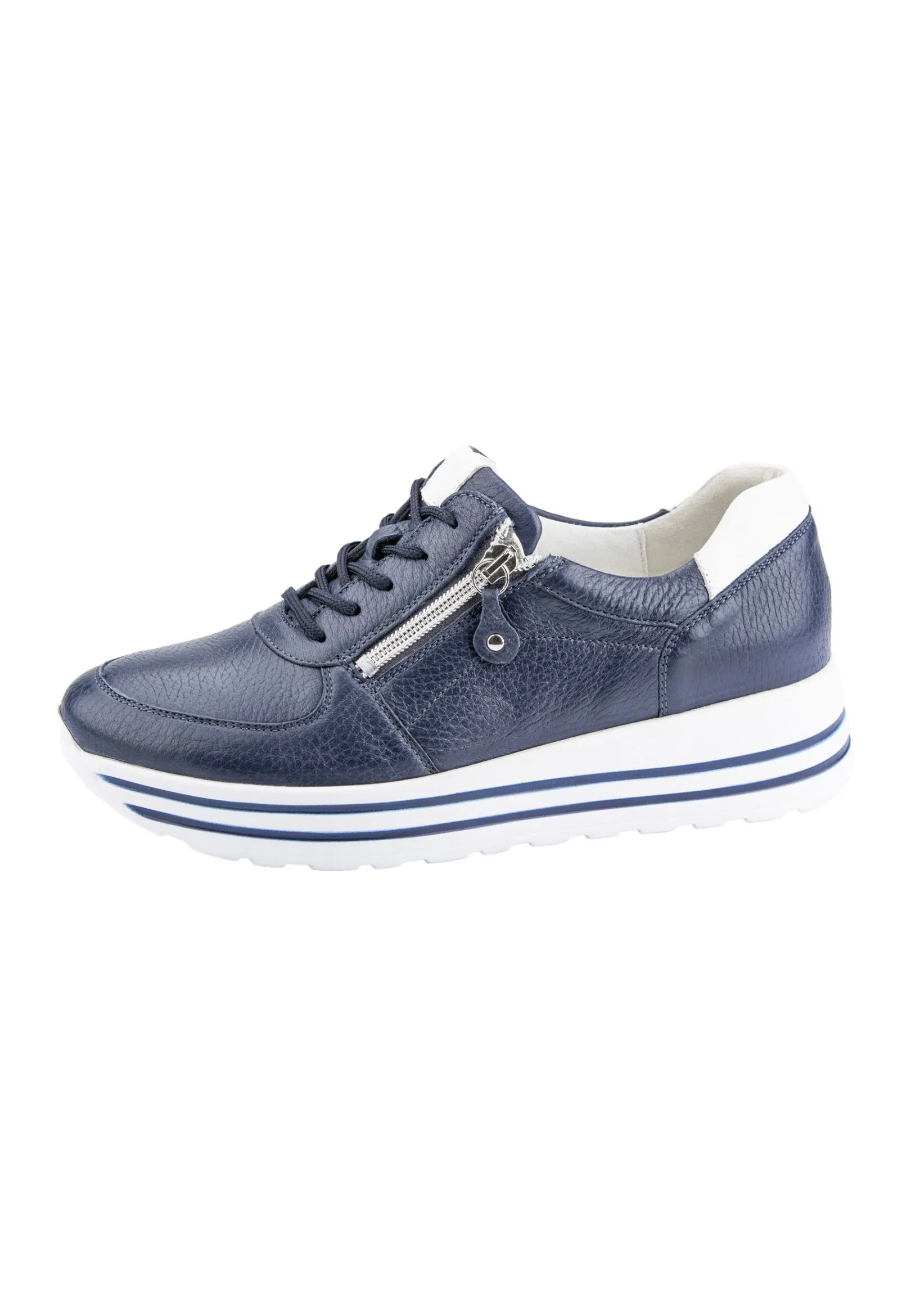 In Nachtblau In Kombination Mit Weiß Steht Der H-Lana Sneaker Für Den Idealen Marinelook. Dieser Alltime-Favorite Sieht Aber Nicht Nur Gut Aus, Er Ist Auch Äußerst Bequem Und Hervorragend Für Lange Tage Geeignet. Möglich Wird Dies Durch Das Äußerst Anschmiegsame Und Fußfreundliche Hirschleder, Die Leichte Sohle Und Den Zusätzlichen Reißverschluss Für Einfaches An- Und Ausziehen.