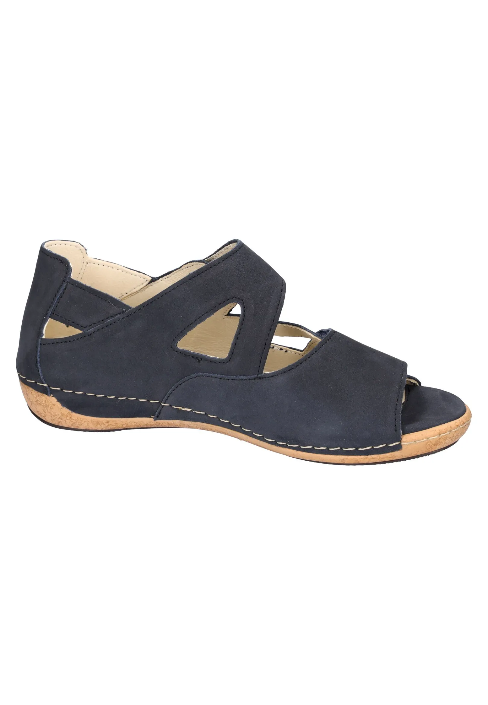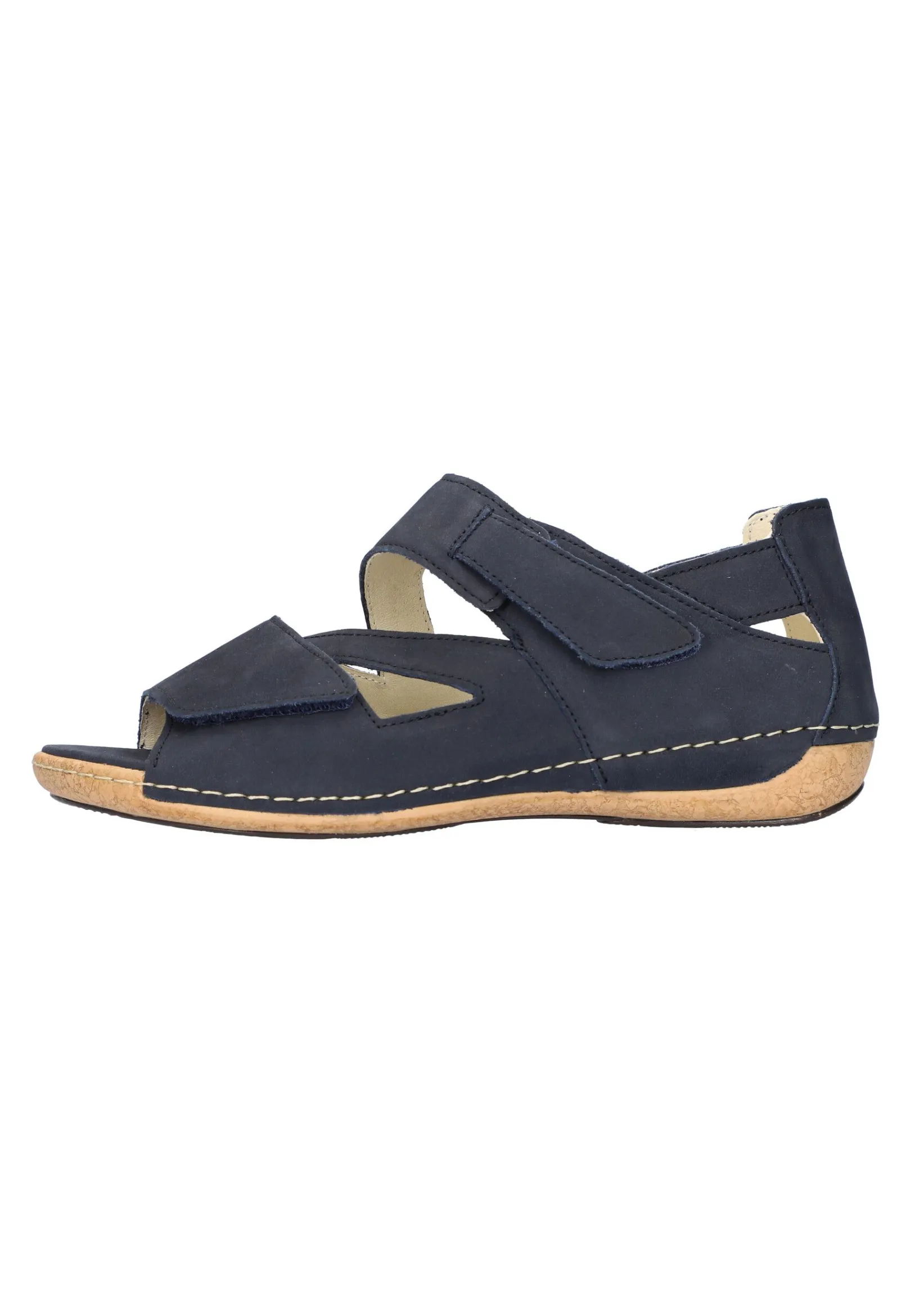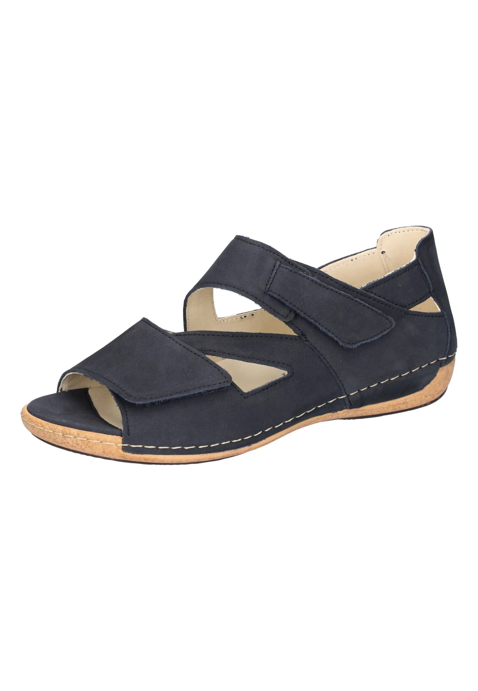 Die Waldläufer Sandale Heliett In Marine Ist Ideal Für Damen Mit Einem Etwas Stärkeren Fuß. Sie Bietet Zusätzlichen Komfort Mit Ihrer Gängigen H-Passform Und Ist Aus Hochwertigem Nubukleder Gefertigt. Die Strapazierfähige Pu-Sohle Sorgt Für Gute Stoßdämpfung Beim Laufen Und Der Klettverschluss Ermöglicht Eine Individuelle Einstellung Für Perfekte Passform.