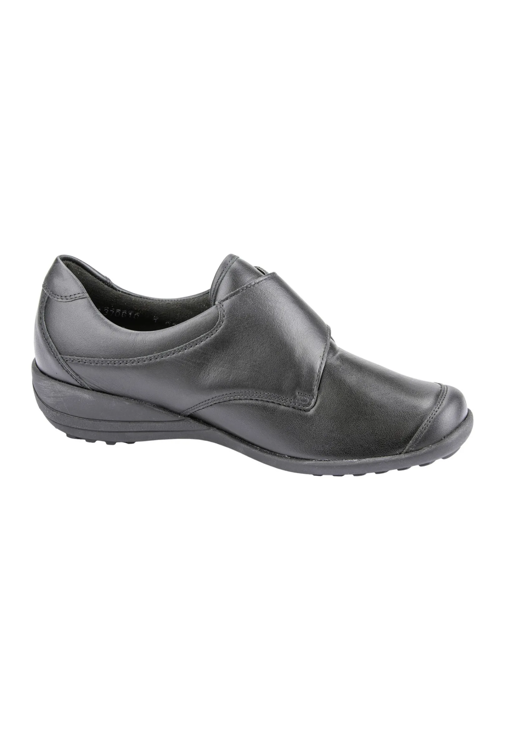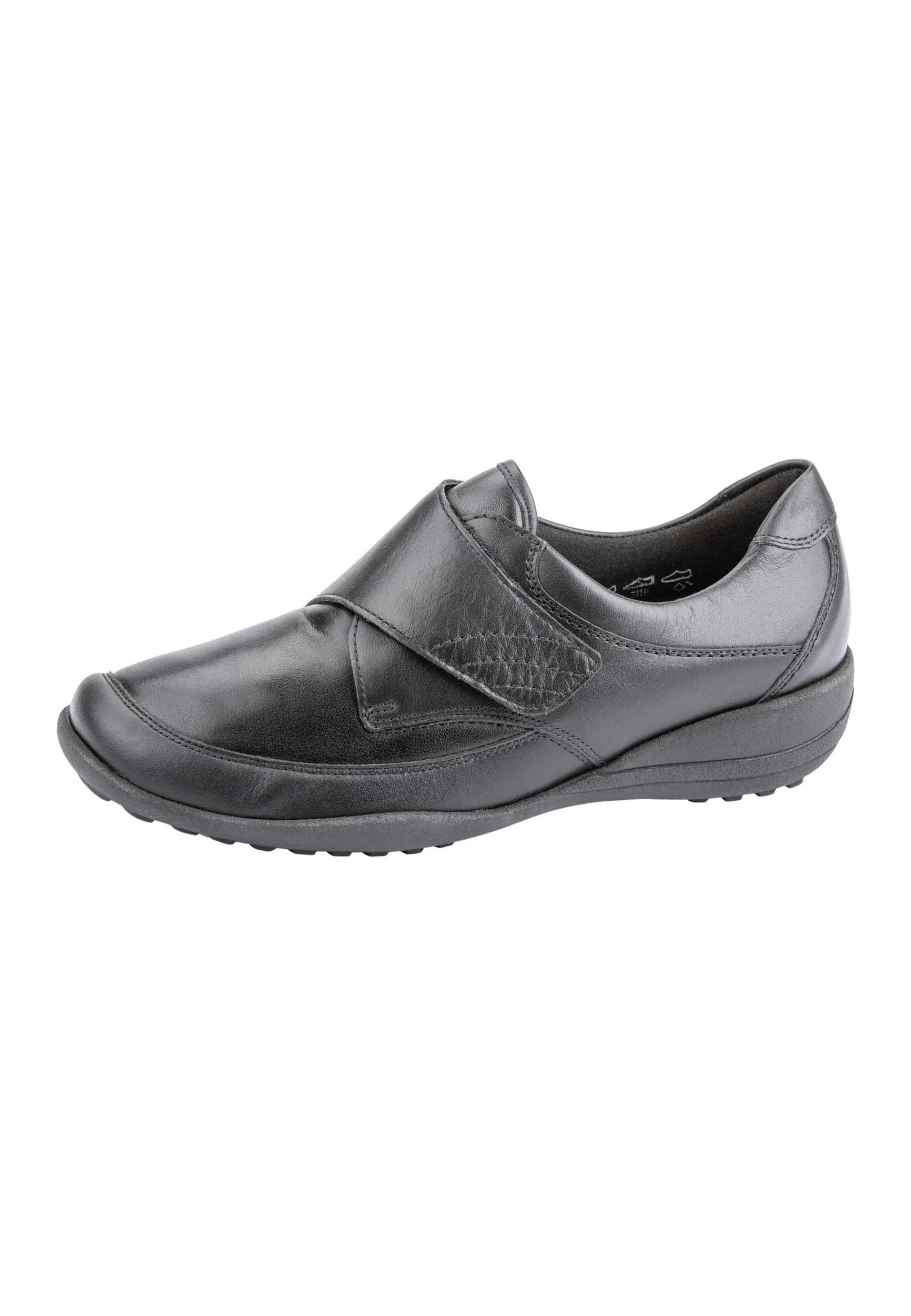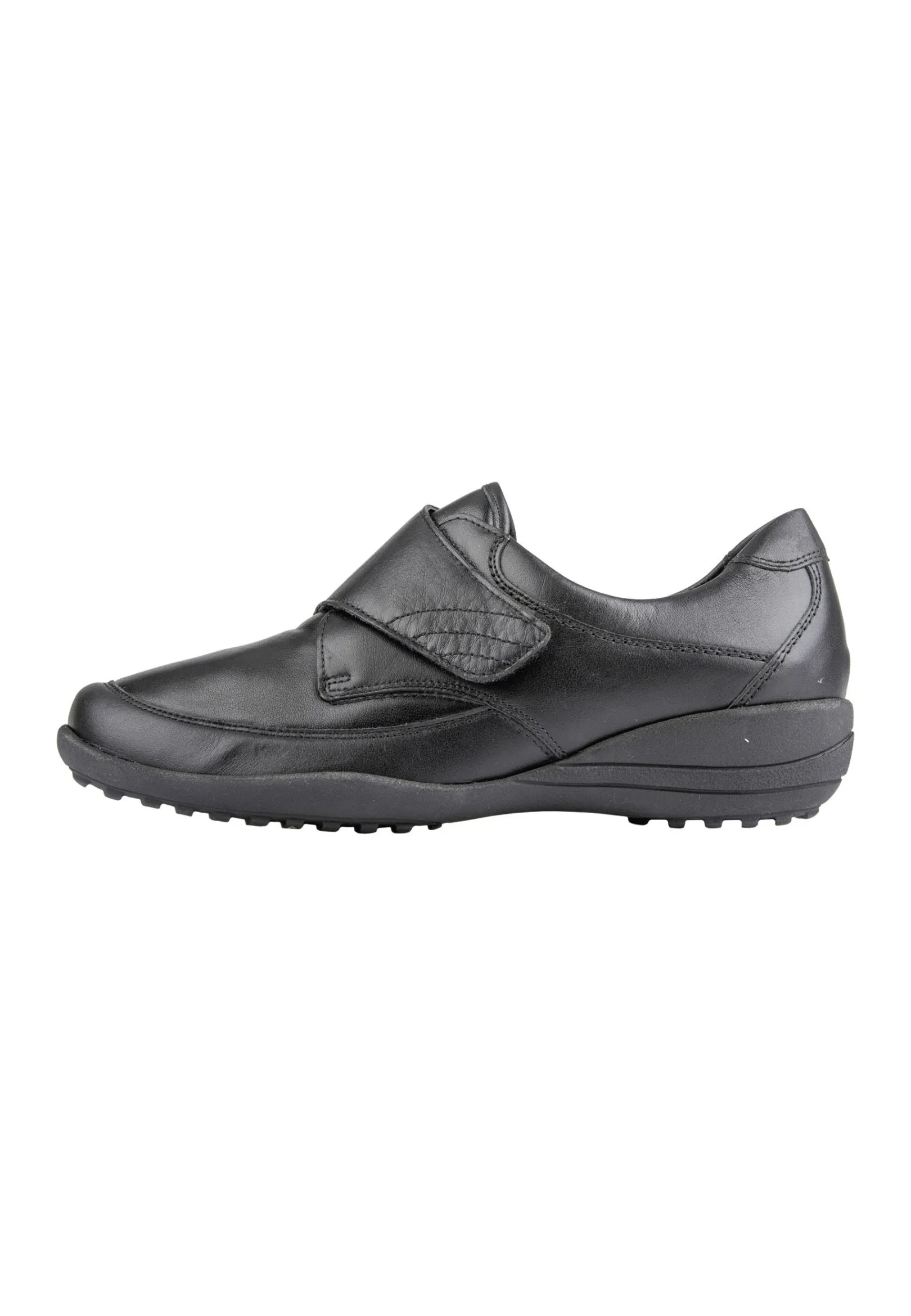 Der Klettschuh Katja-Soft In Der Weite K Ist Optimal Auf Den Kräftigen Fuß Zugeschnitten. In Uni Schwarz Passt Er Sich Den Verschiedensten Outfits An. Von Klassisch Bis Modern. Von Leger Bis Festlich. Als Modell Aus Der Orthotritt-Kollektion Ist Dieser Halbschuh Aus Besonders Anschmiegsamem Nappaleder Gefertigt. Zusätzlich Wirkt Das Gut Gepolsterte Innenfutter Entlastend Auf Druckempfindliche Stellen. Mit Seinem Klettverschluss Passt Er Sich Dem Fuß Individuell An. Waldläufer Typisch Ist Das Bequeme, Auch Durch Eine Orthopädische Einlage Ersetzbare Wechselfußbett Mit Luftpolsterung.