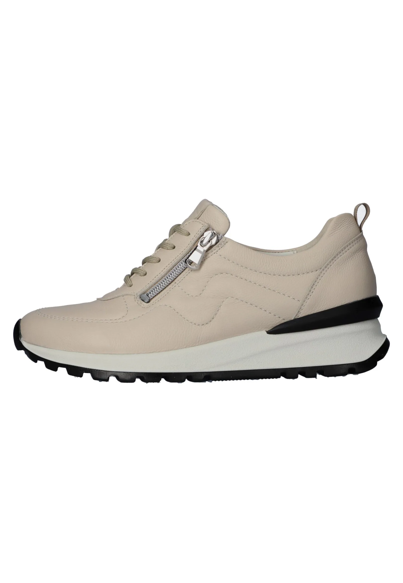 Dieser Bequeme Sneaker In Der Weite H Überrascht Mit Seinen Subtilen Details Auf Dem Obermaterial. Das Weiche Nappaleder In Der Farbe Beige Wird Durch Die Markanten Nähte In Szene Gesetzt. Durch Die Schnürung Lässt Sich Der Schuh Individuell An Die Fußweite Anpassen, Der Seitliche Reißverschluss Ist Ein Schönes Detail Und Erleichtert Das An- Und Ausziehen. Die Herausnehmbare Einlegesohle Und Das Innenfutter Bieten Weiteren Komfort. Die Leichte Pu-Sohle In Weiß Sorgt Für Einen Bequemen Gang Und Ist Ein Farblicher Hingucker.
