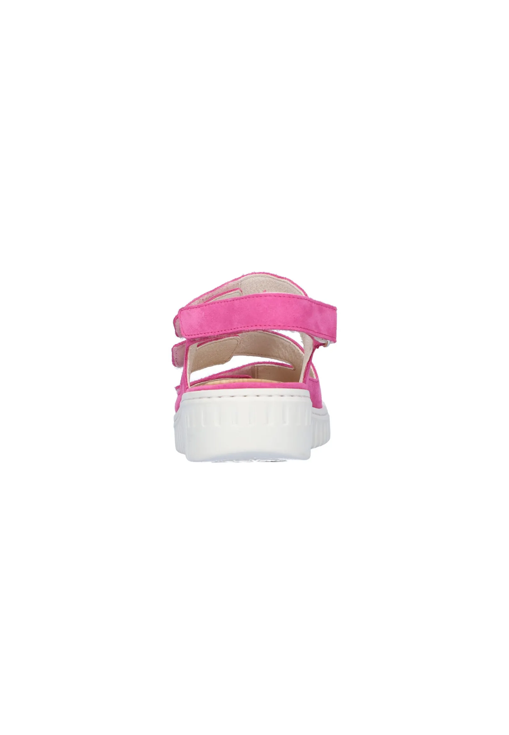 Entdecken Sie Die Waldläufer H-Willow Sandale In Einem Bezaubernden Rosa-Orchid. Hergestellt Aus Veloursleder Bietet Diese Sandale Stil Und Langlebigkeit. Das Futter Aus Leder Sorgt Für Ein Angenehmes Tragegefühl, Während Die Großzügige H-Weite Eine Bequeme Passform Gewährleistet. Mit Einem Klettverschluss Ausgestattet, Ermöglicht Diese Sandale Eine Individuelle Anpassung. Die Strapazierfähige Rubflex-Sohle Bietet Optimalen Halt Und Komfort. Ideal Für Warme Tage Und Entspannte Spaziergänge.