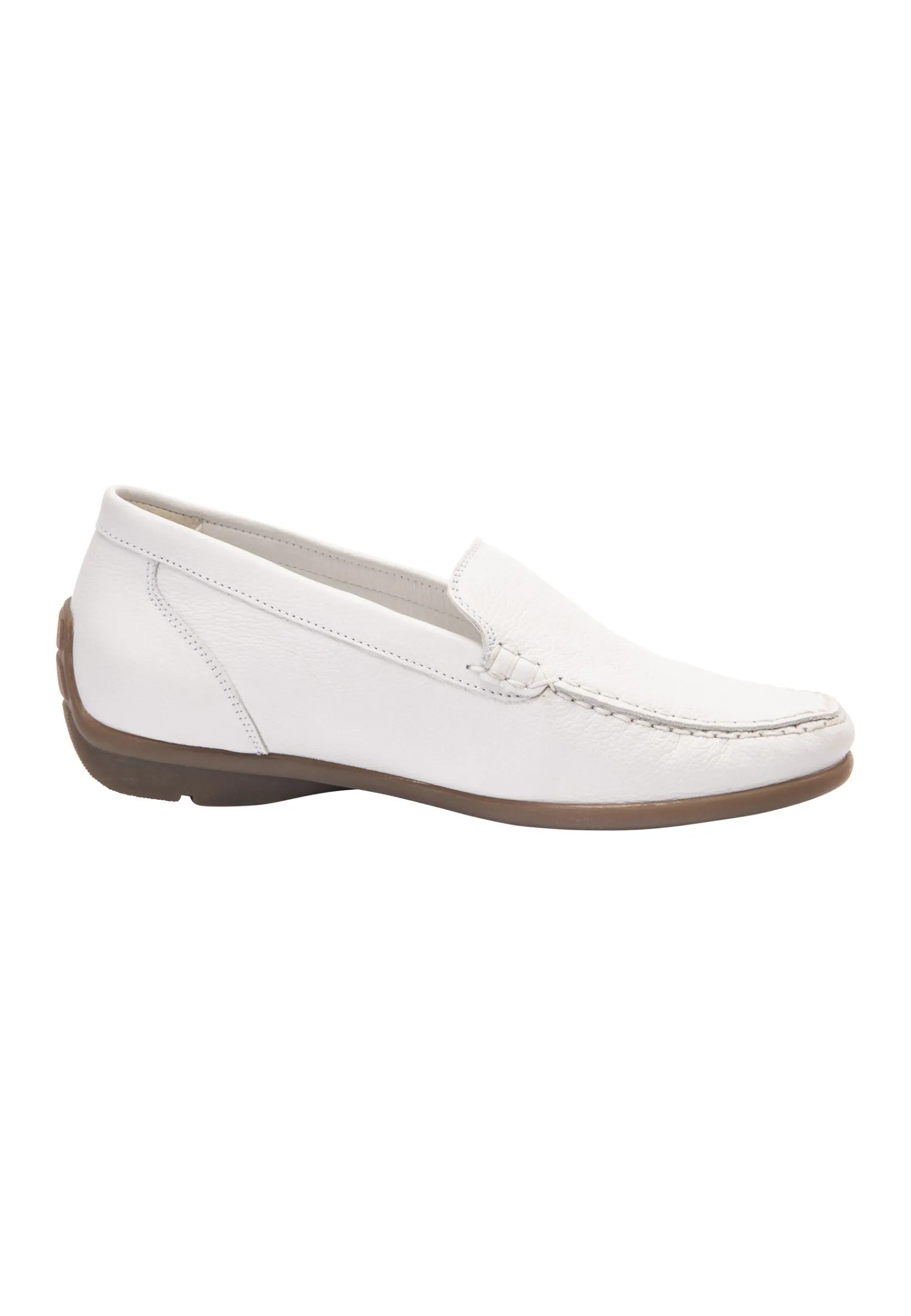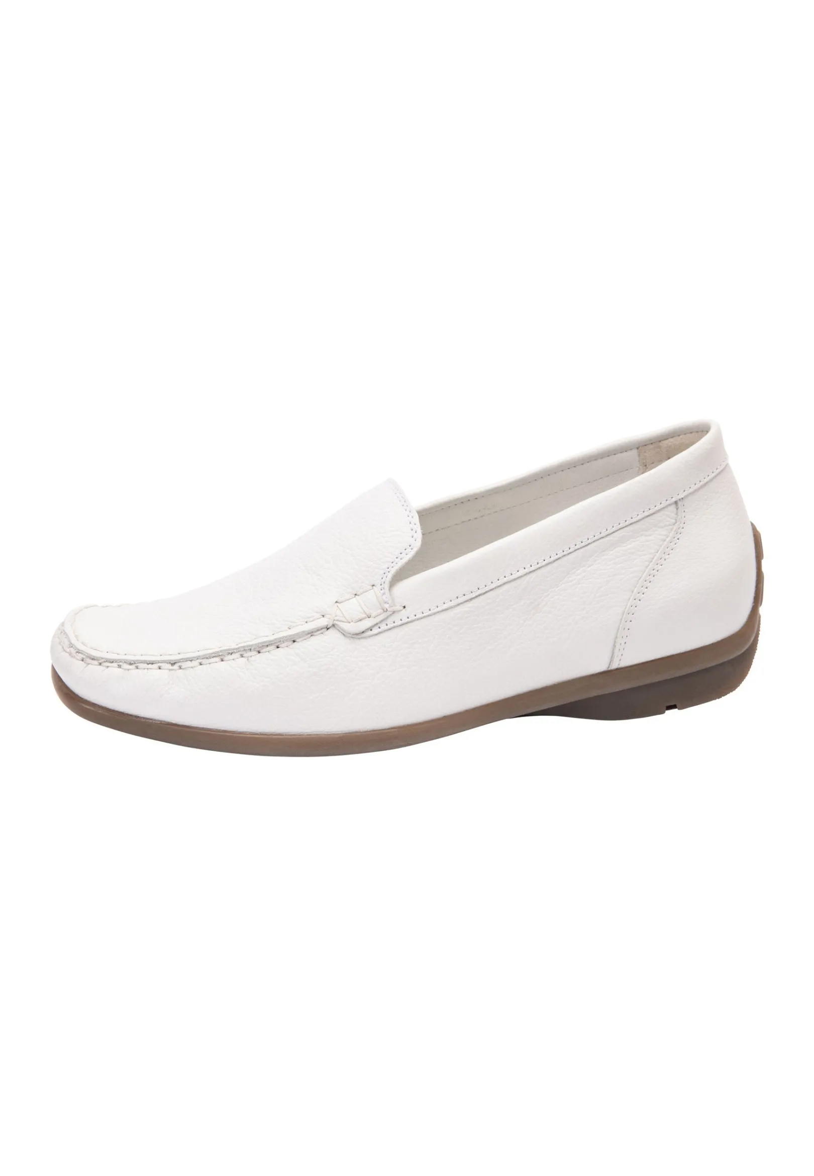 Ein Zeitloser Klassiker Ist Unser Damen-Mokassin Harriet In Weiß. Schlichtes Glattleder Erlaubt Schier Unendlich Viele Kombinationsmöglichkeiten Von Chic Bis Lässig. Mit Seiner Leichten Sohle Und Seinem Weichen, Wechselbaren Fußbett Trägt Euch Der Schuh Bequem Durch Die Stadt Und Die Natur. Das An- Und Ausziehen Wird Dank Flexibler Materialien Zum Kinderspiel Und In Der H-Weite Fühlen Sich Etwas Stärkere Füße Besonders Wohl.